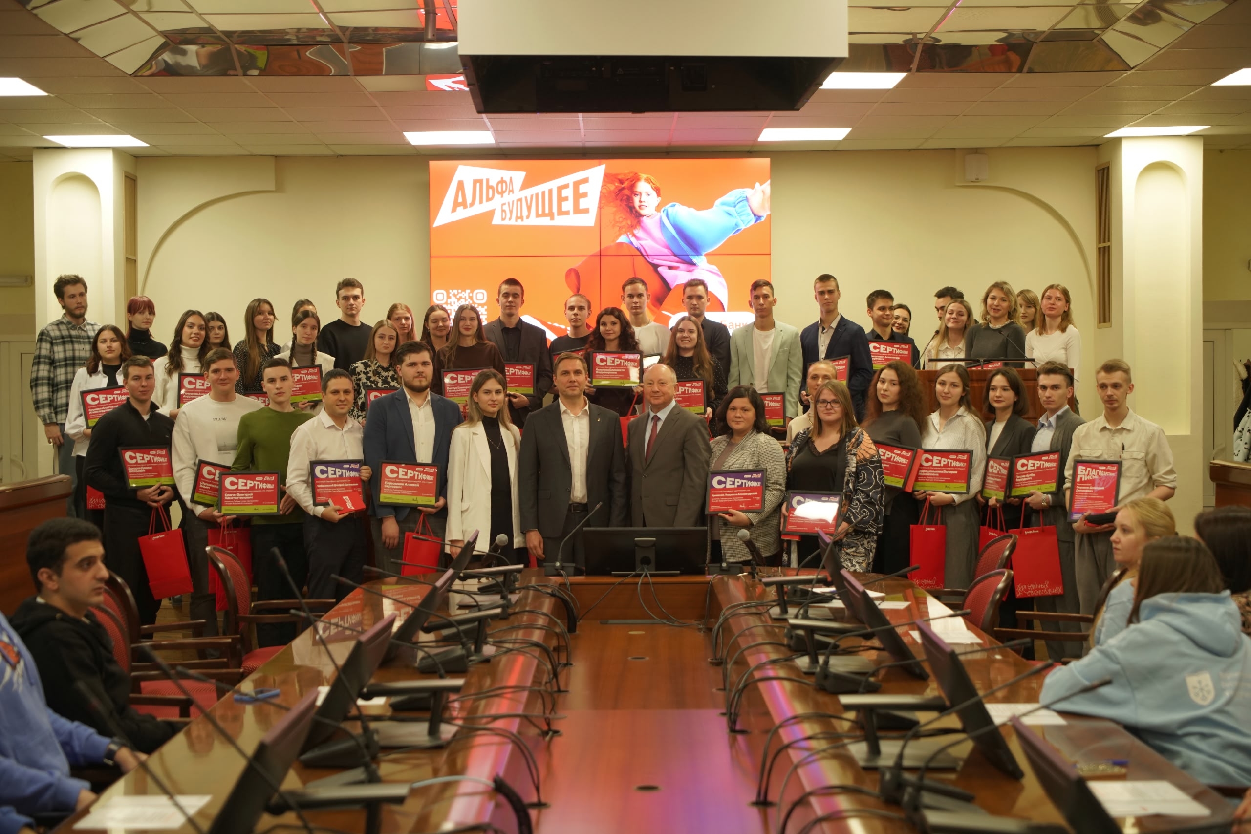 Кроме того, представители партнёра университета "Альфа-Банк" вручили студентам и преподавателям, ставшим участниками программы "Альфа-будущее", сертификаты, ценные призы и фирменные подарки.