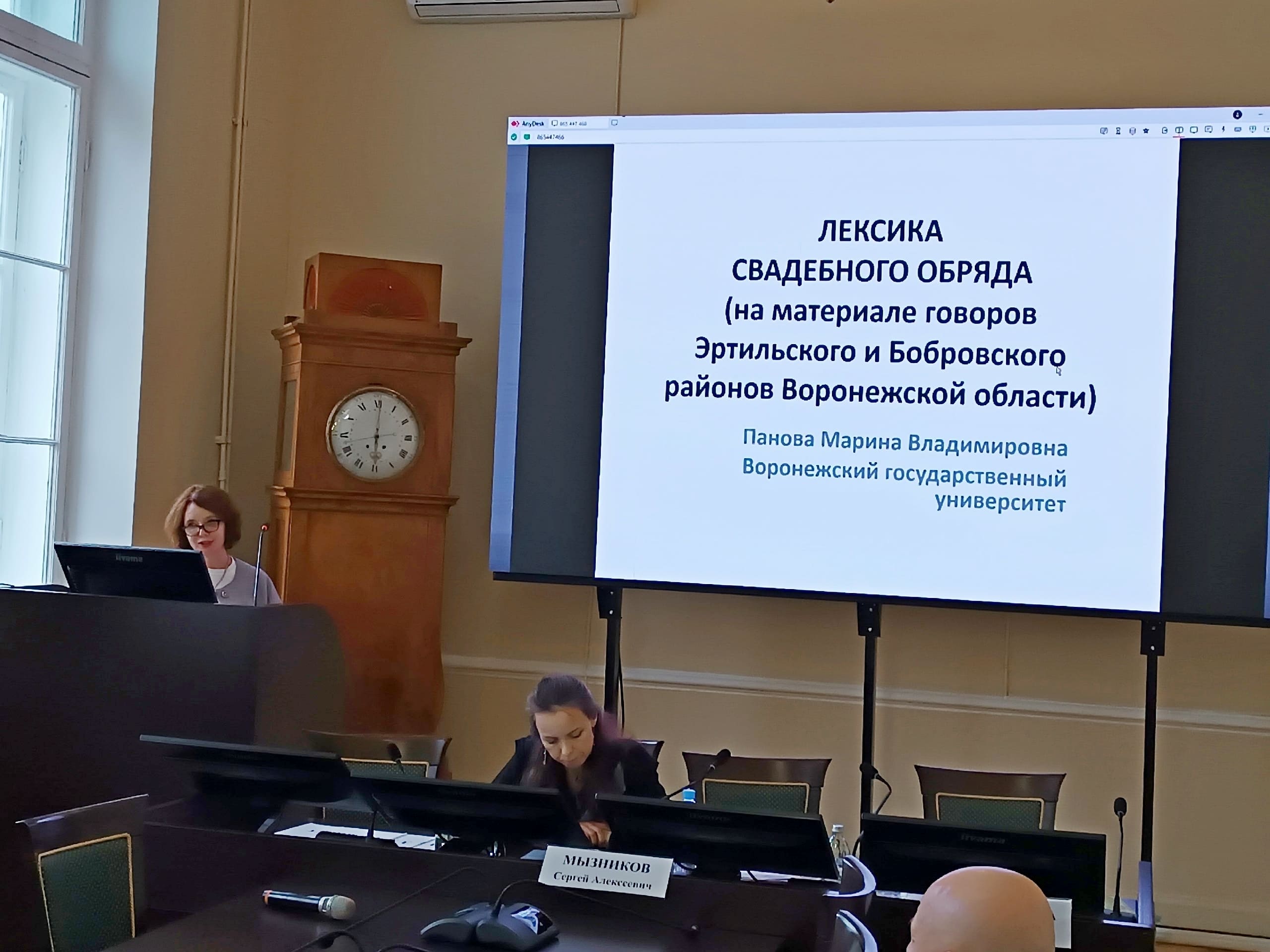 Марина Владимировна и Дарья Николаевна приняли очное участие в совещании, выступили с докладами, посвященными лексике воронежских говоров, посетили картографический семинар, а также вошли в коллектив составителей карт для нового тома Лексического атласа русских народных говоров.