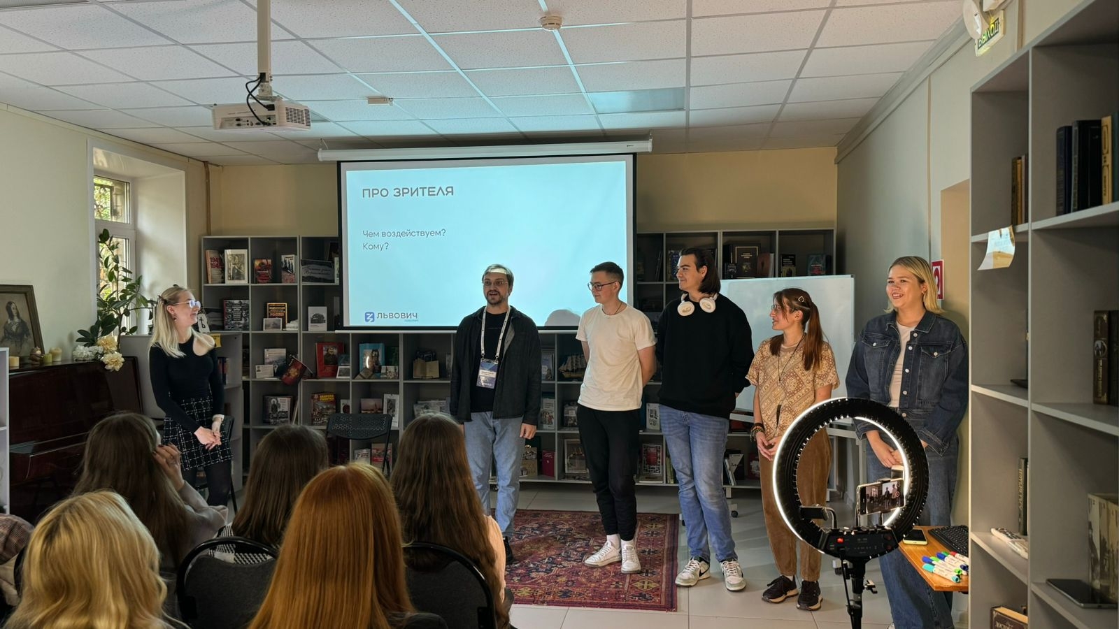 Студенты стали участниками театрального путешествия по страницам повести Алексея Прасолова "Жестокие глаголы" в формате иммерсивного театра. Режиссёром театрального представления выступил актёр и основатель проектов "ШоуОратор" и "Львович говорит" Николай Львович Кодинов.
